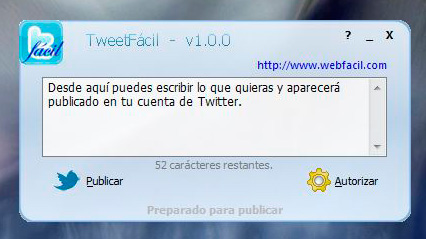 TWeetFácil es un pequeño programa que se integra en el escritorio de Windows